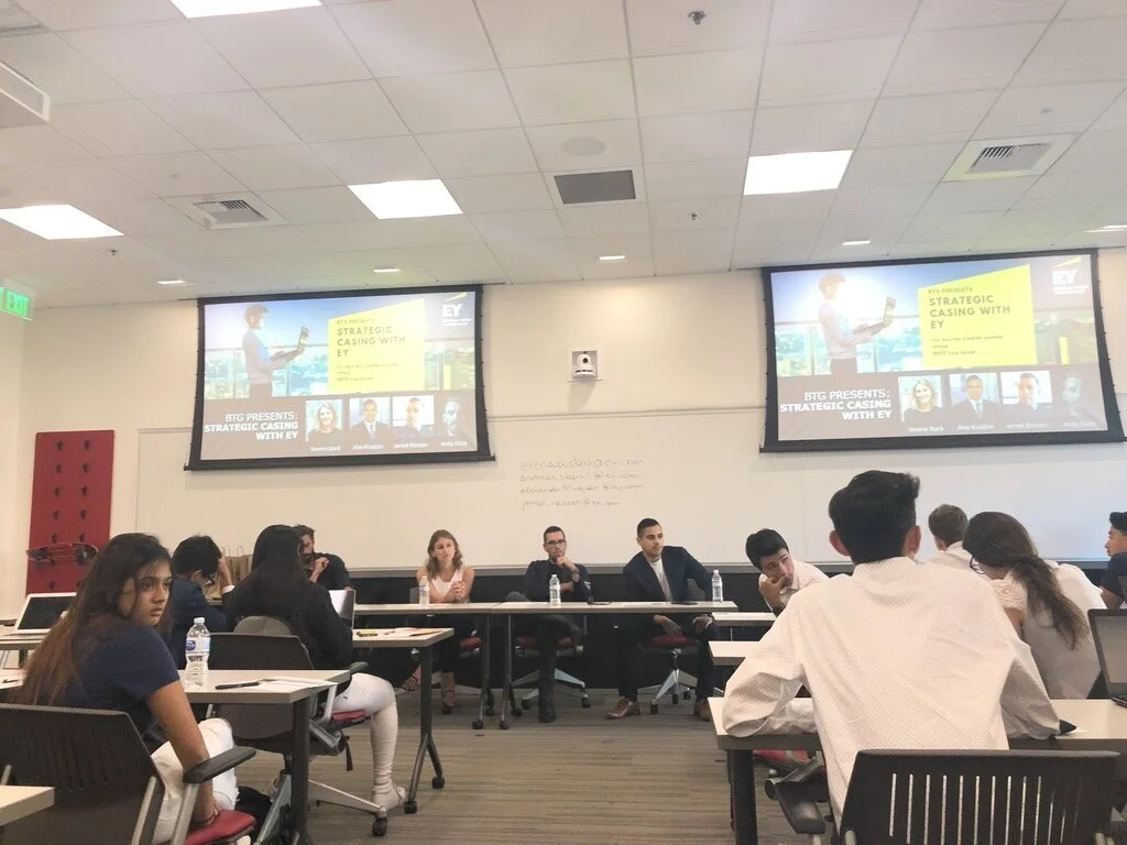 We invited multiple executives from EY to guide participants through a sample digital strategy case. Students formed teams and then presented their ideas to the executives